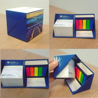 Stationery cube with sticky notes and flags will be a fantastic helper on your office desk and will not take too much space.